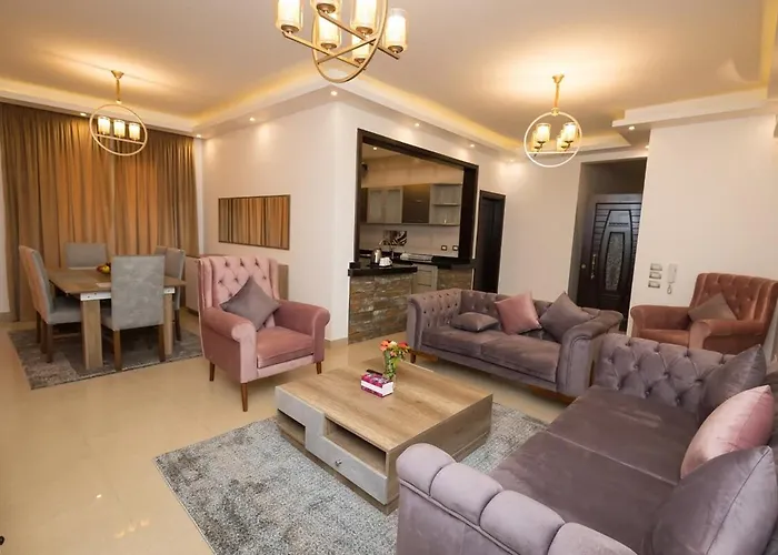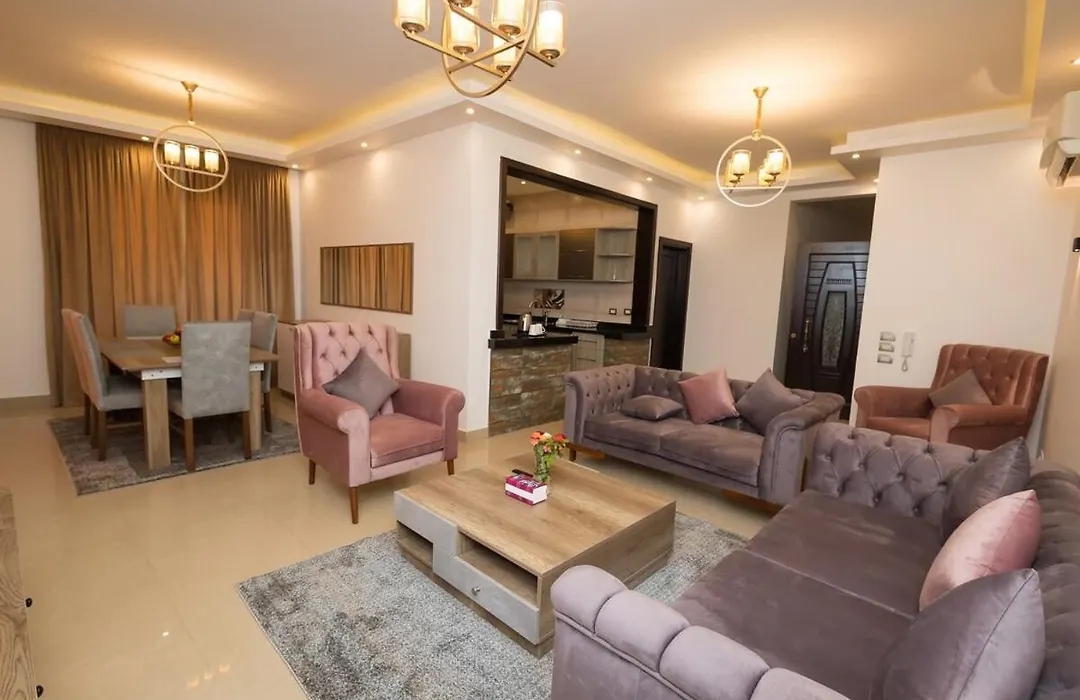 The 180 m² Wanderluxe Infinity Apartment Cairo includes a terrace and is located 4.6 km from the landscaped garden "Family Park". Guests can make use of Wi-Fi for both business and leisure purposes.